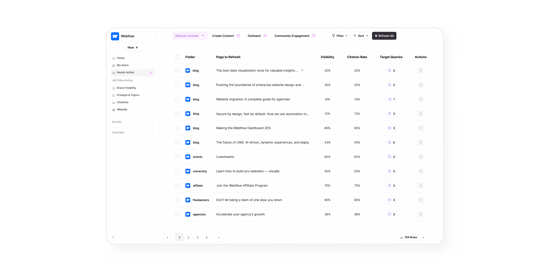 Webflow accelerates content refresh by 5X, driving +40% traffic from SEO + AEO