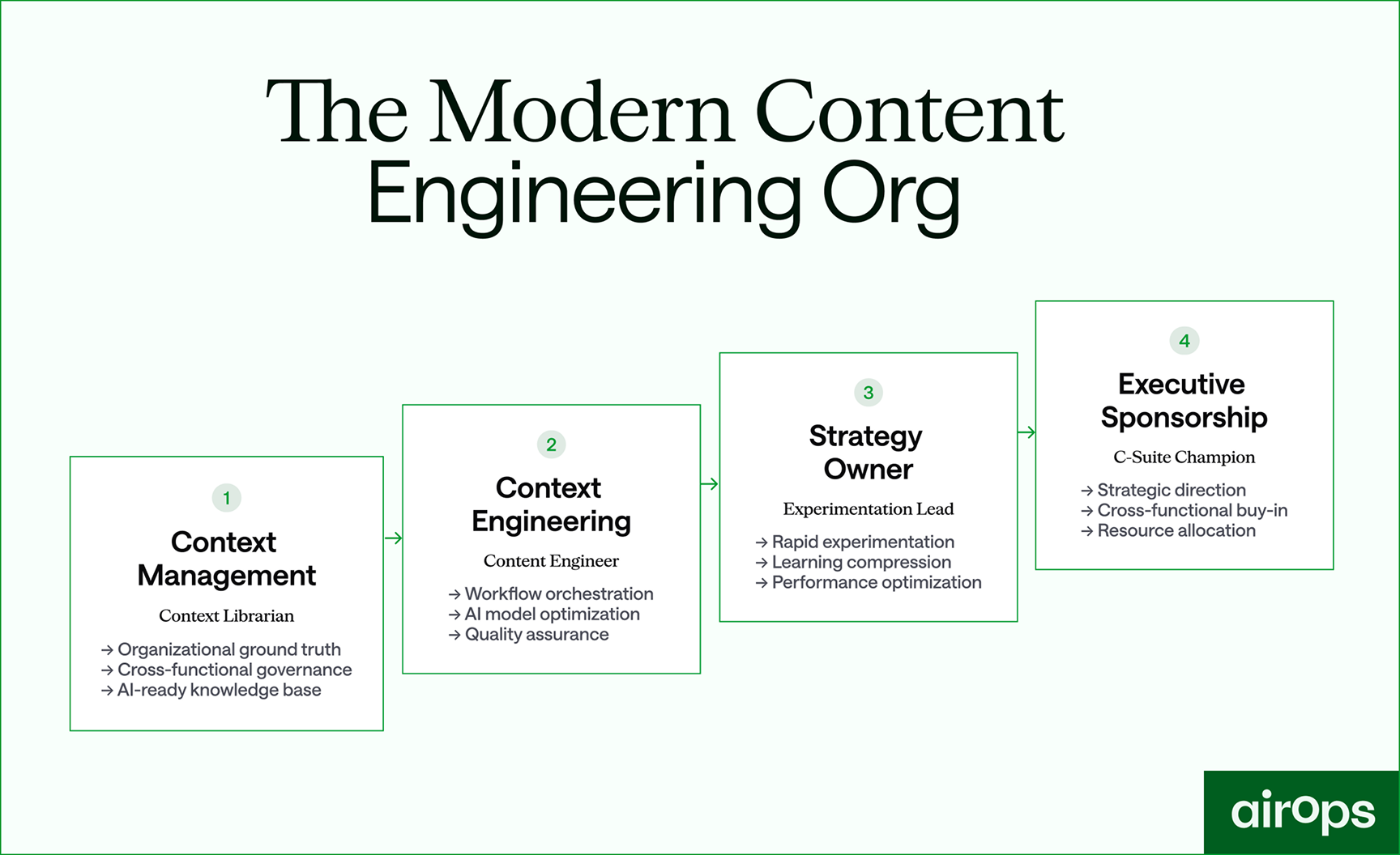 - After: Content Engineers measure success by system efficiency. Time-to-market for new content campaigns. Citation rate in AI outputs. Hours saved per published piece through automation.
