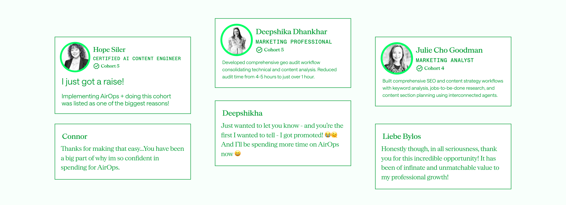— Liebe Bylos, Content Engineering Consultant and AirOps Cohort Grad