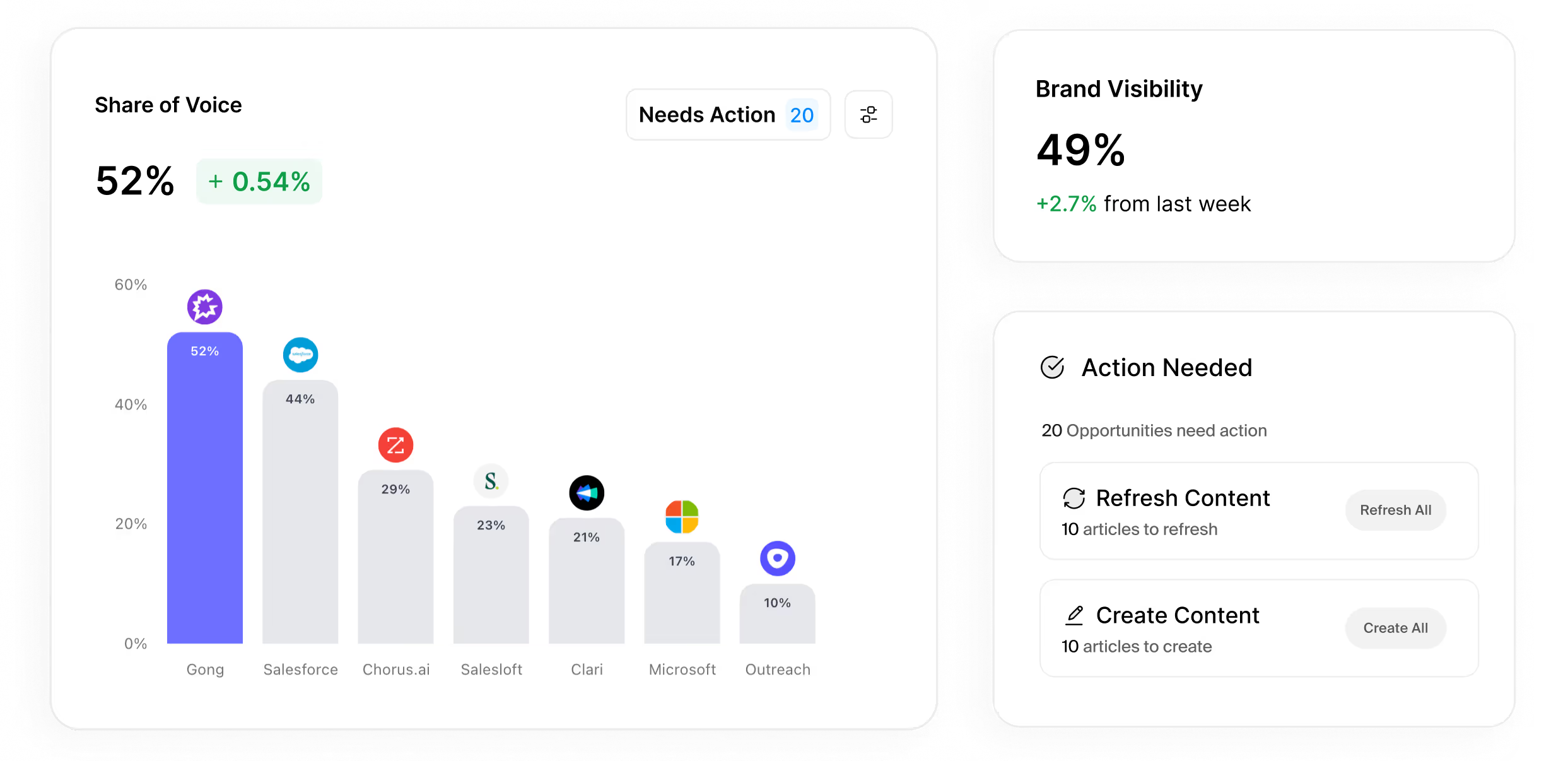 Increase brand visibility across AI search and Google with the only platform taking you from insights to action.
