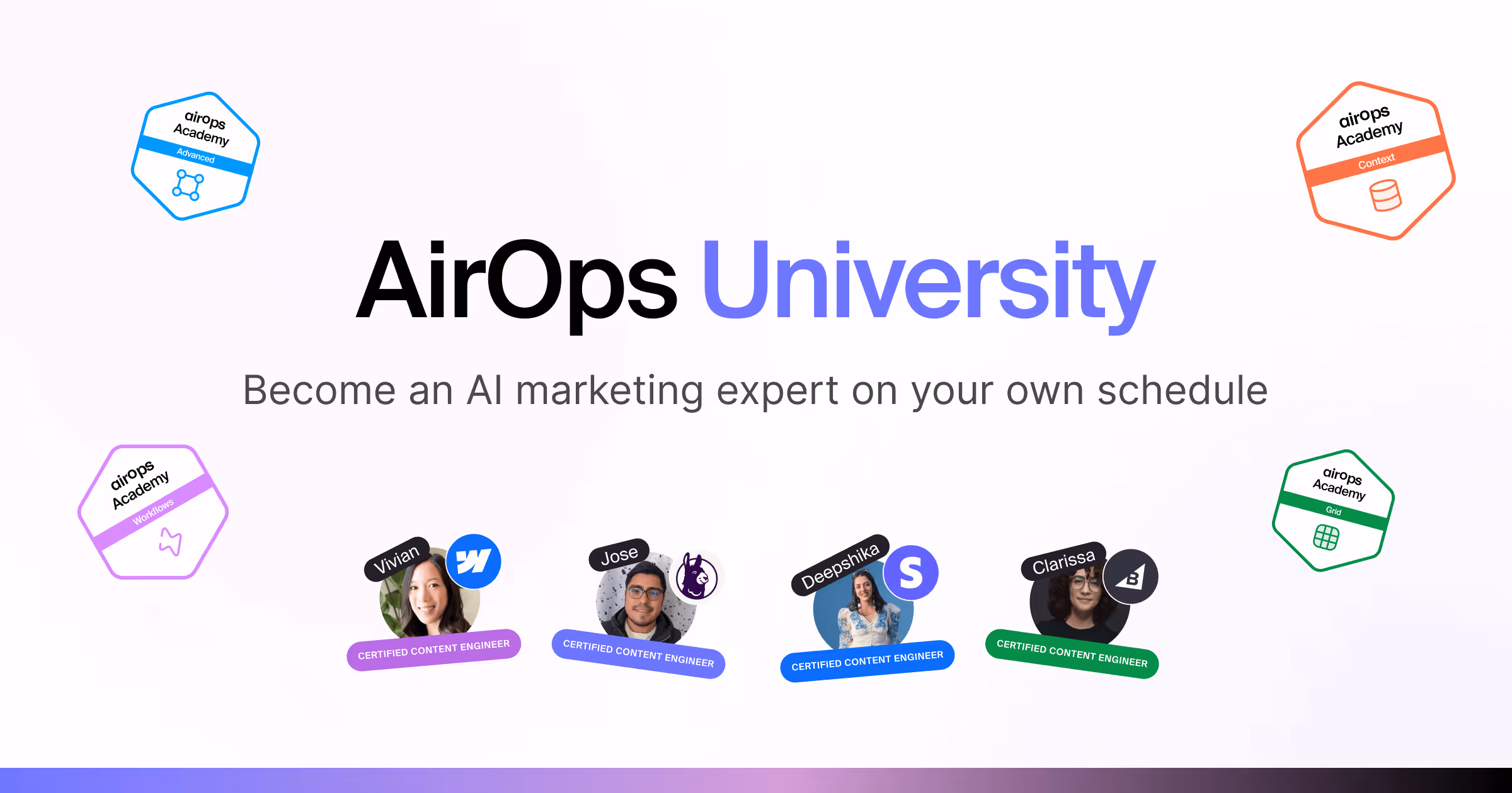 At AirOps, we help SEO and content teams to build, optimize, and grow their AI content workflows and publishing processes. Whether it’s through workflow automation, content production, or SEO-powered AI systems, we help your team move faster without compromising quality.