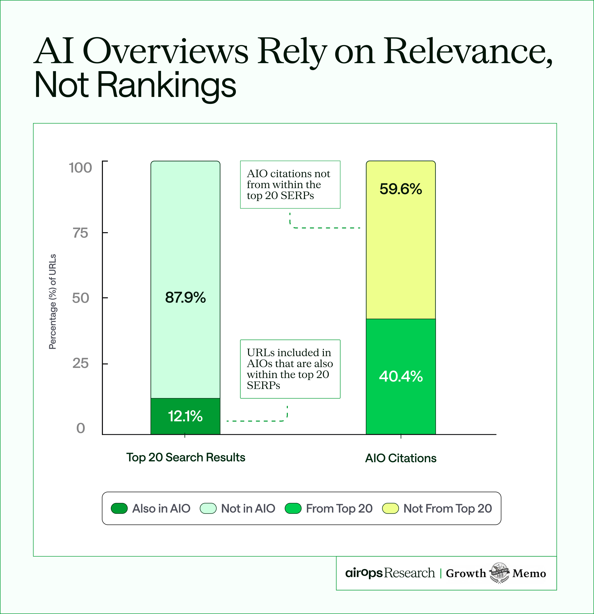 A page can rank first and never appear in an AI response. At the same time, a source that’s cited frequently inside AI answers may not hold a top organic position.