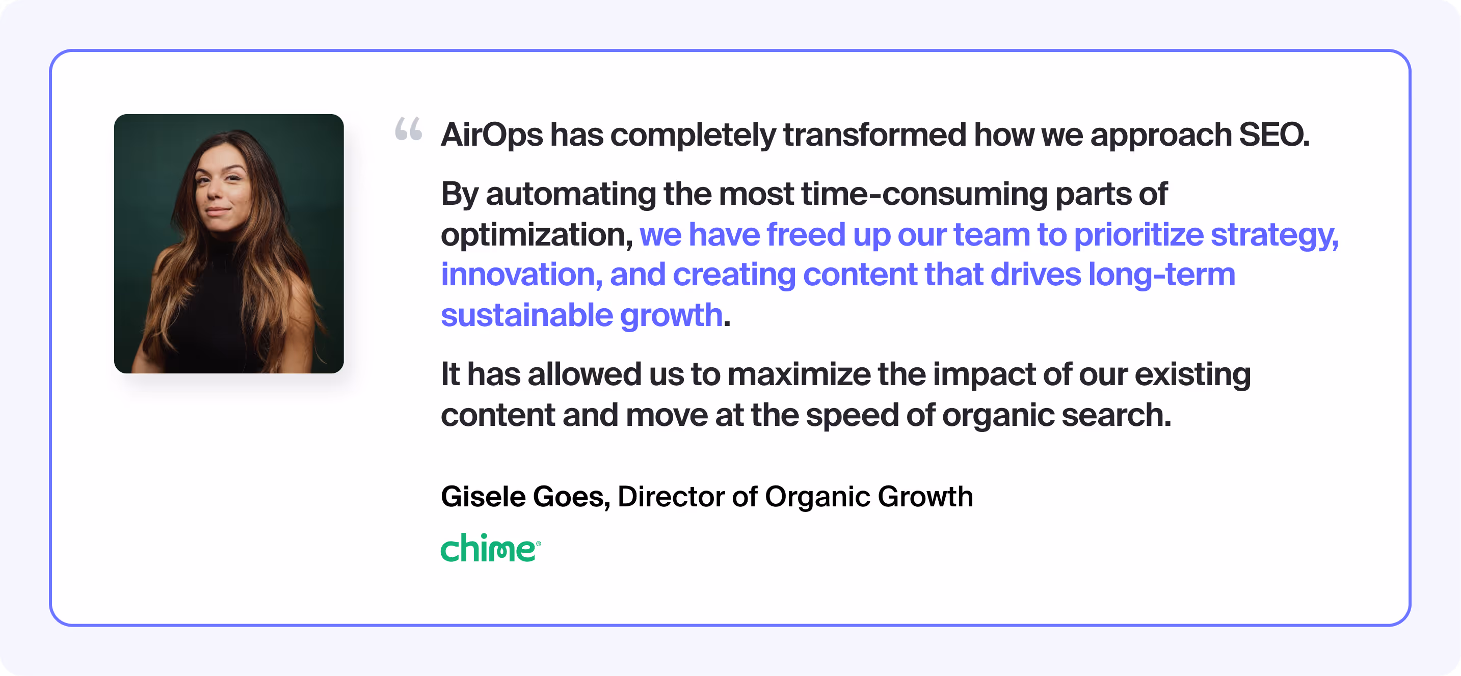 For Chime’s Director of Growth, Gisele Goes, the impact was immediate.