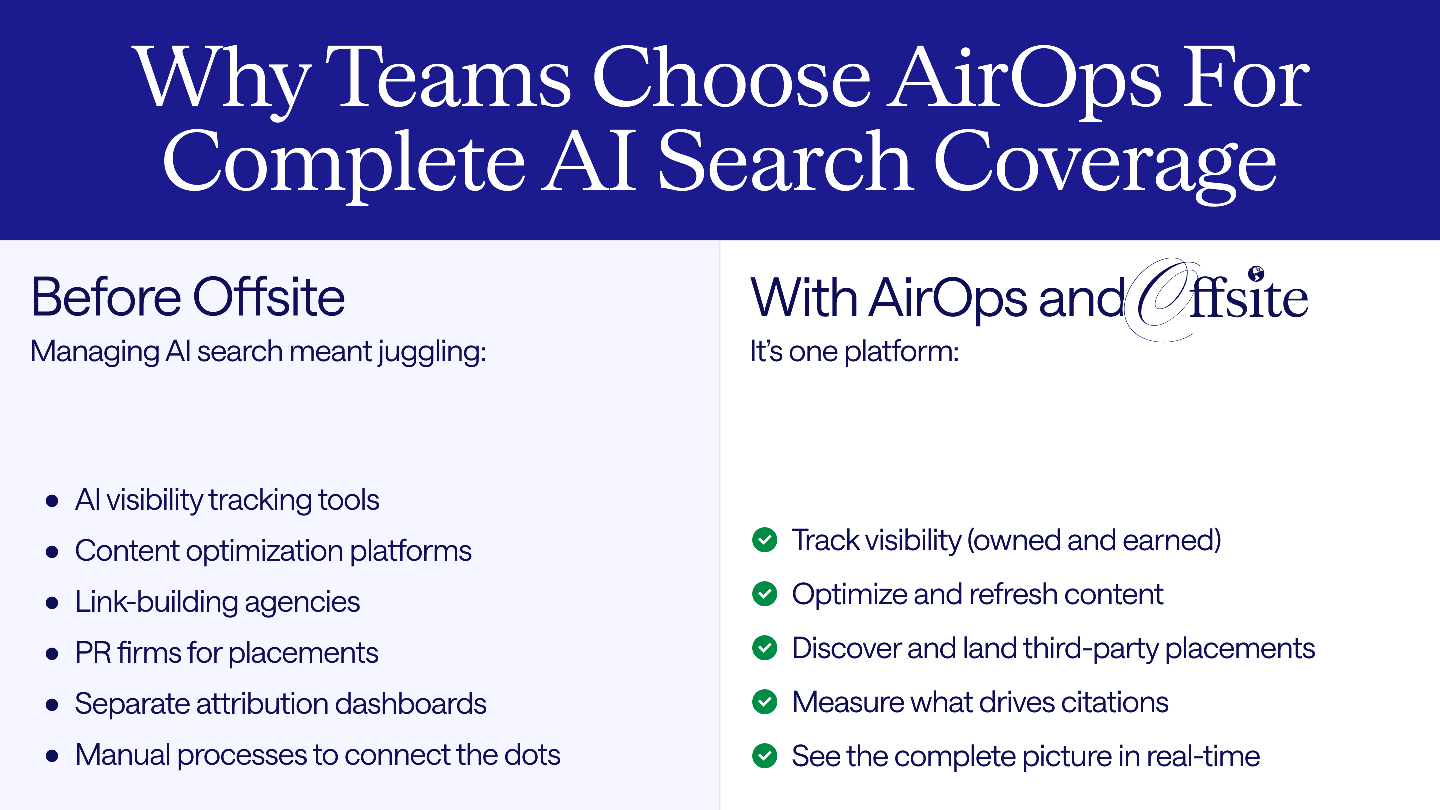 Ready to see which publishers control AI visibility in your category? Learn more about AirOps Offsite