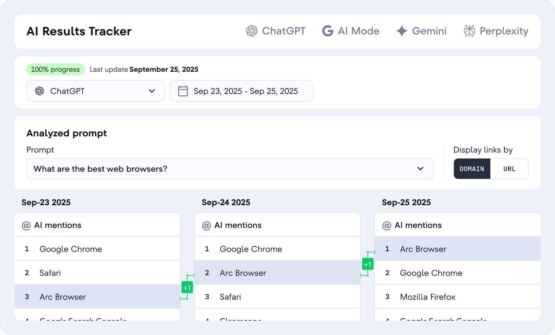 - Daily AI answer and citation tracking