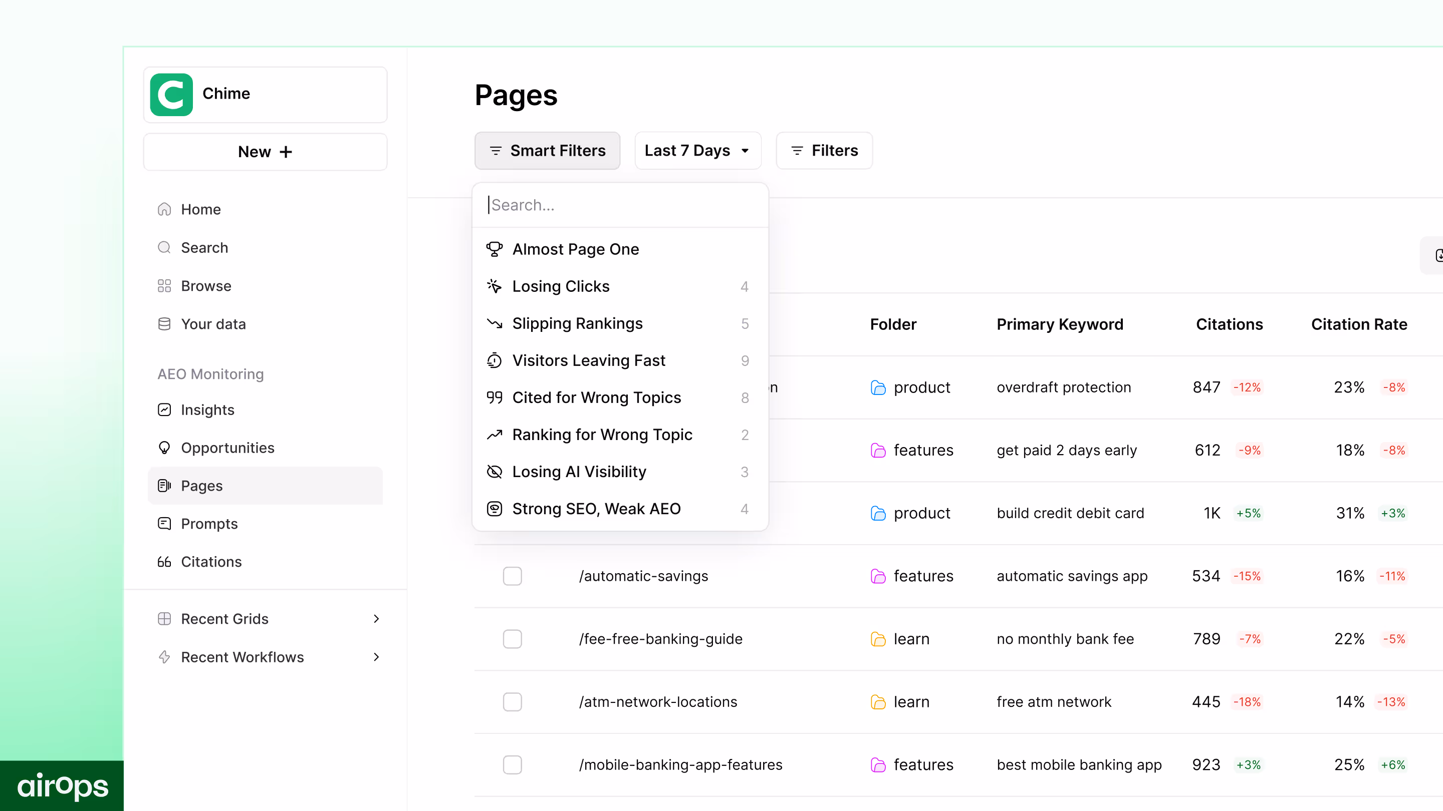 Leading brands like Ramp, Webflow, Kayak, Klaviyo, and Chime use AirOps as their command center for visibility, ensuring their content shows up with authority and accuracy wherever customers are asking questions.