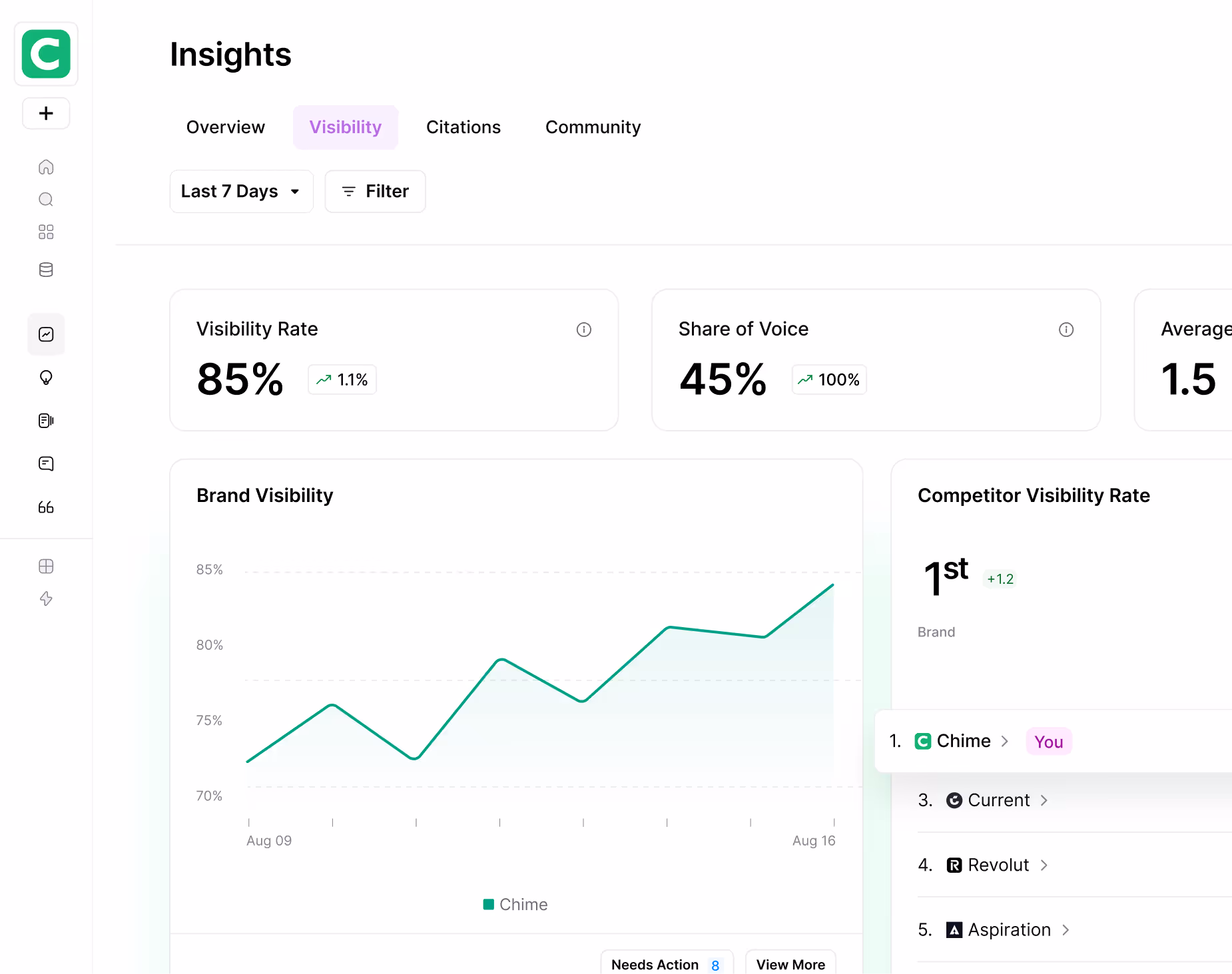 “Our brand visibility score hit a high of 28% after we refreshed content. We saw a 56% increase in subscriptions in 30 days that corresponds to content engineered for agents.