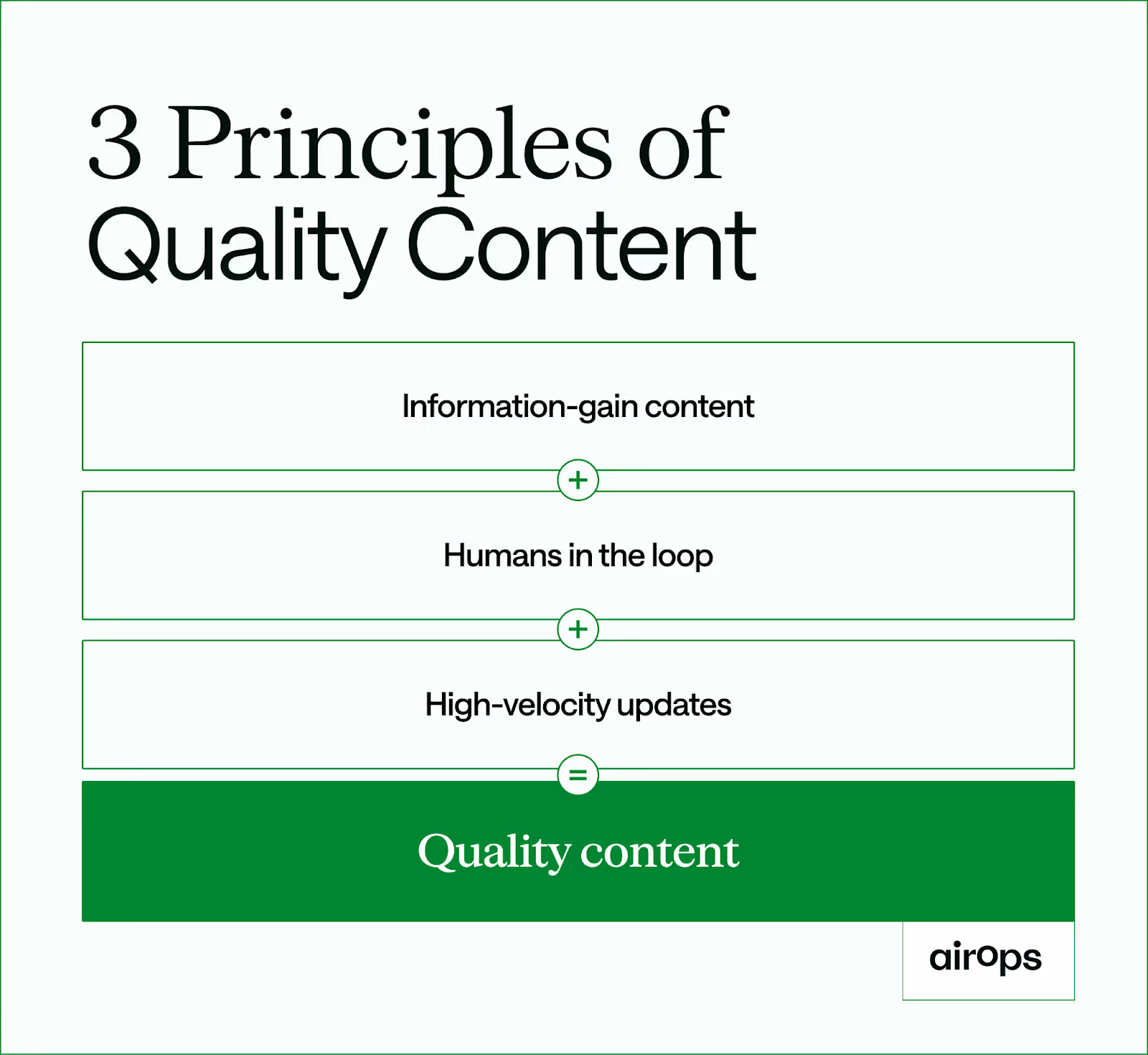 LLMs reward novelty, not noise. The web is saturated with repetition, and large models filter for sources that add something new. Winning teams compete on information gain. They publish proprietary data, internal insights, and distinct points of view that expands the model’s knowledge, not restate it.
