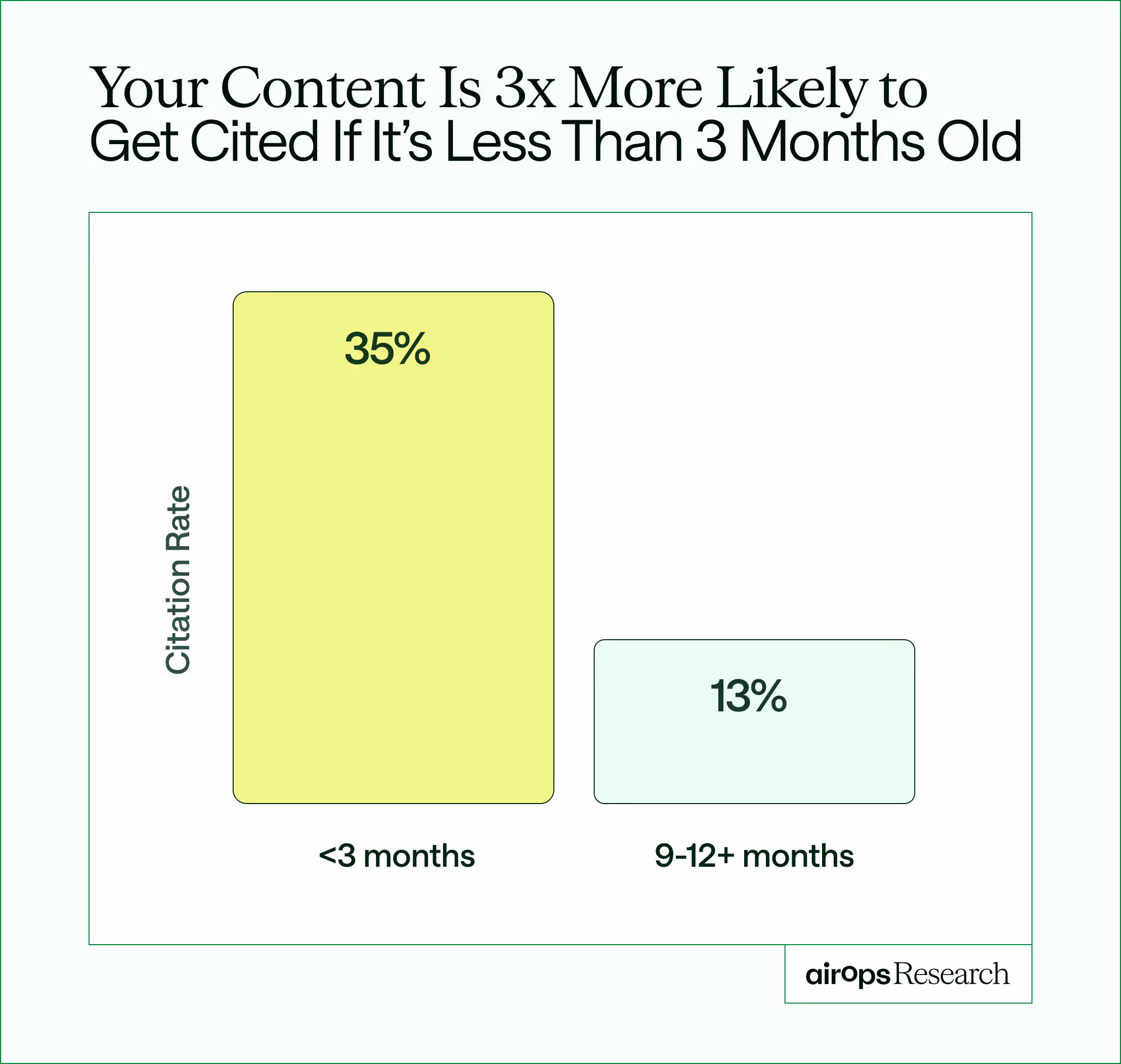 - Pages refreshed within 3 months are 3× more likely to be cited.