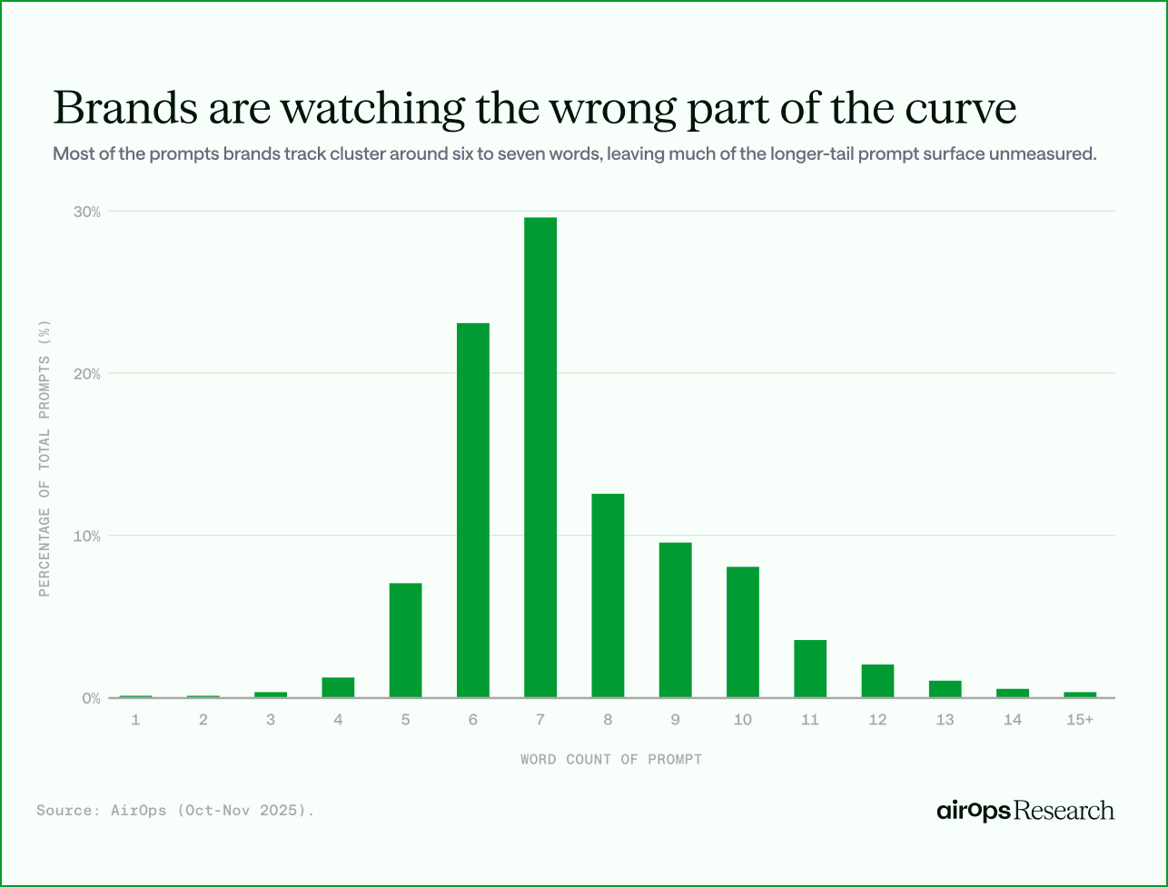 Even teams that have started tracking AI prompts are still biased toward the head. The prompts they monitor are often shorter and more keyword-like than what people actually ask in AI search.